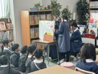 その後は図書室へ移動し、2年生の大型絵本の読み聞かせや紙芝居での交流をしました。
