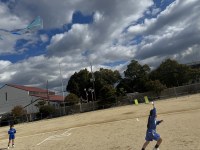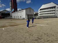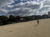 1年生が、グラウンドで凧あげを楽しみました。