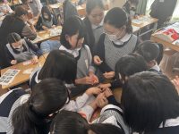 今年度は「カードケース作り」です。放送室からのビデオ放送で作り方を教えていただき、各教室で