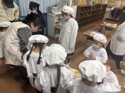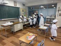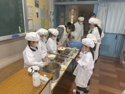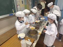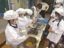 小学校へ入学して、2回目の給食です。6年生のお姉さんも手伝ってくれました。