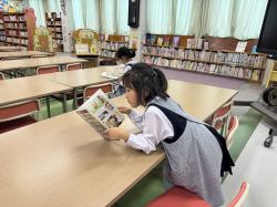 今日の天候は雨。図書室では静かに落ち着いて読書をする姿も見られました。
